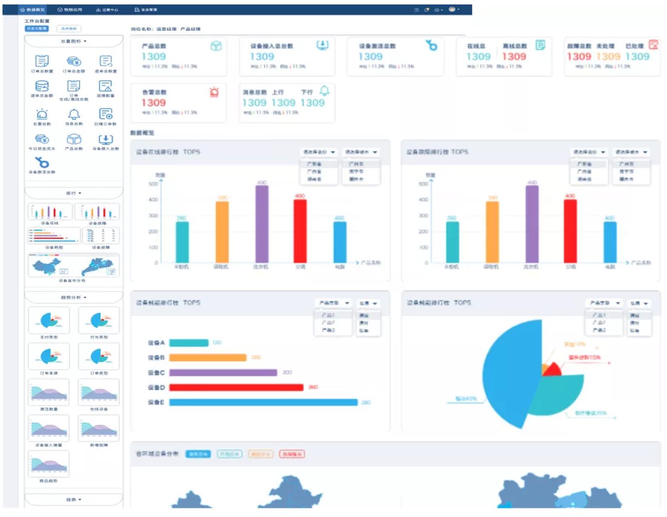 数据标准化提供上百种数据统计图表组件,无论您是想组合不同业务系统的数据,还是想自定义报表风格,无论您想配置业务逻辑,还是想在一个画面组合展示多种内容,都能通过工具数据概览组态功能轻松实现,让数据全面与配置灵活完美融合,更好地契合您的应用场景作出决策。